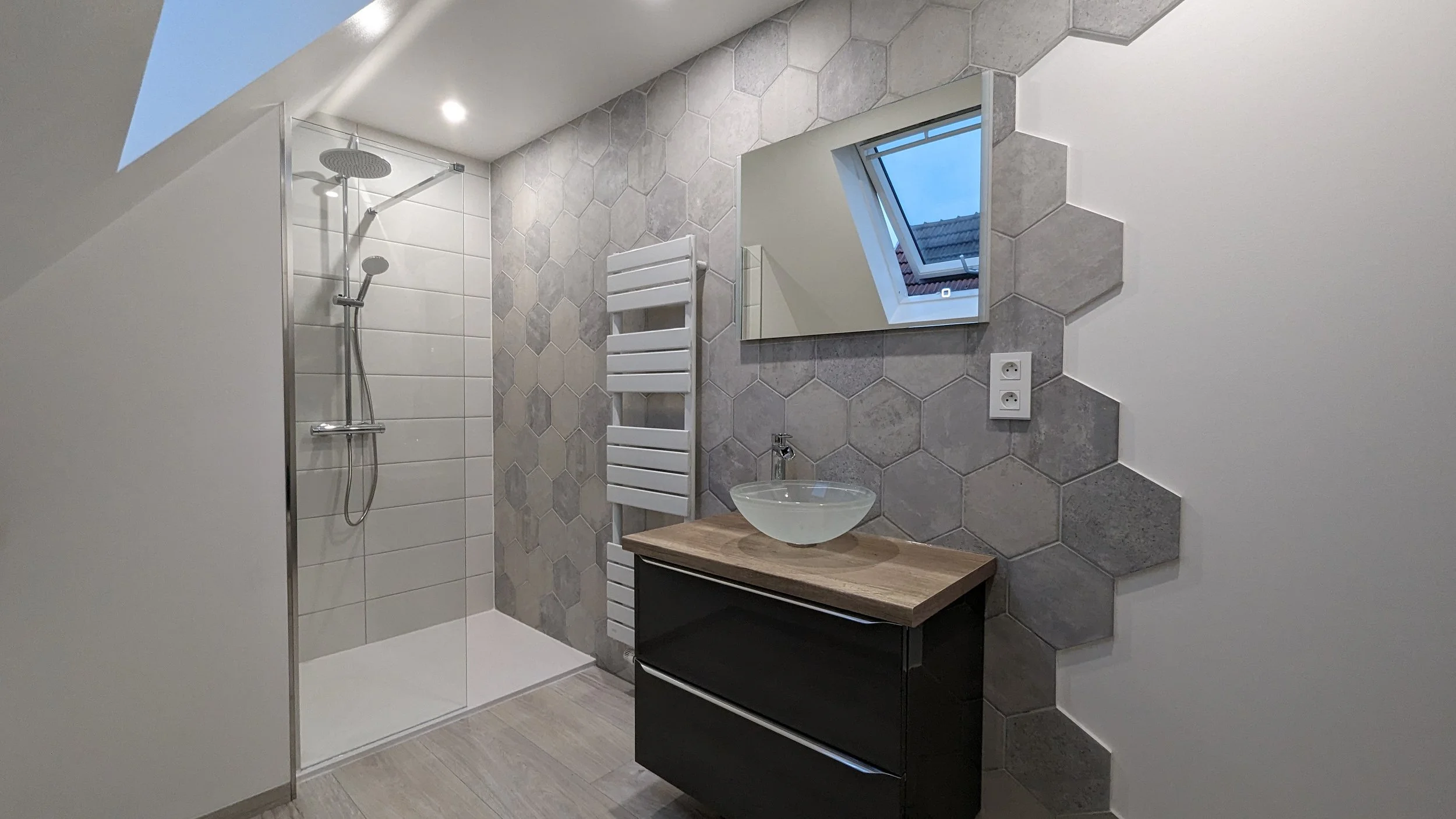 Installation et rénovation de salle de bain : mise en place de meubles de salle de bain, d’appareils sanitaires (cabine de douche, receveur, baignoire, douche à l’italienne....)